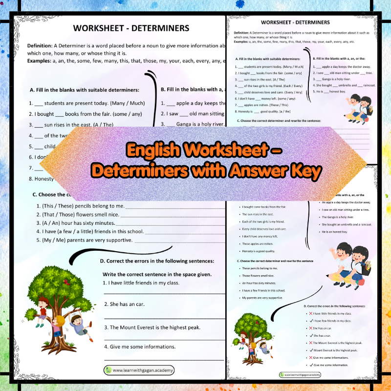 Strengthen grammar skills with this English Worksheet – Determiners with Answer Key.
