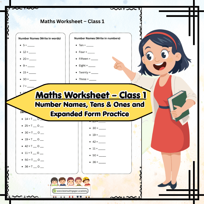 Maths Worksheet – Class 1: Number Names, Tens & Ones and Expanded Form Practice (With Answer Key)