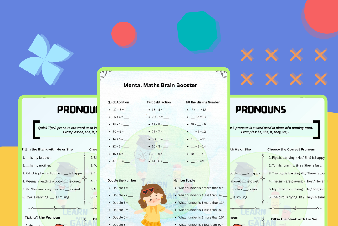 Curriculum-based PDF worksheets designed for LKG to Grade 3, simple to download, easy to print, and made to help children learn with confidence.Â